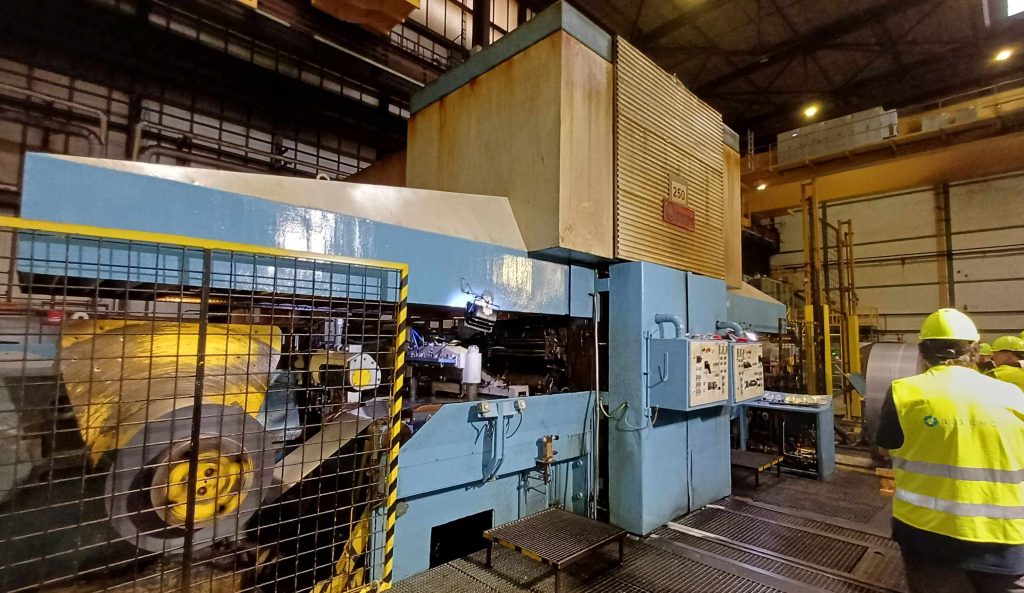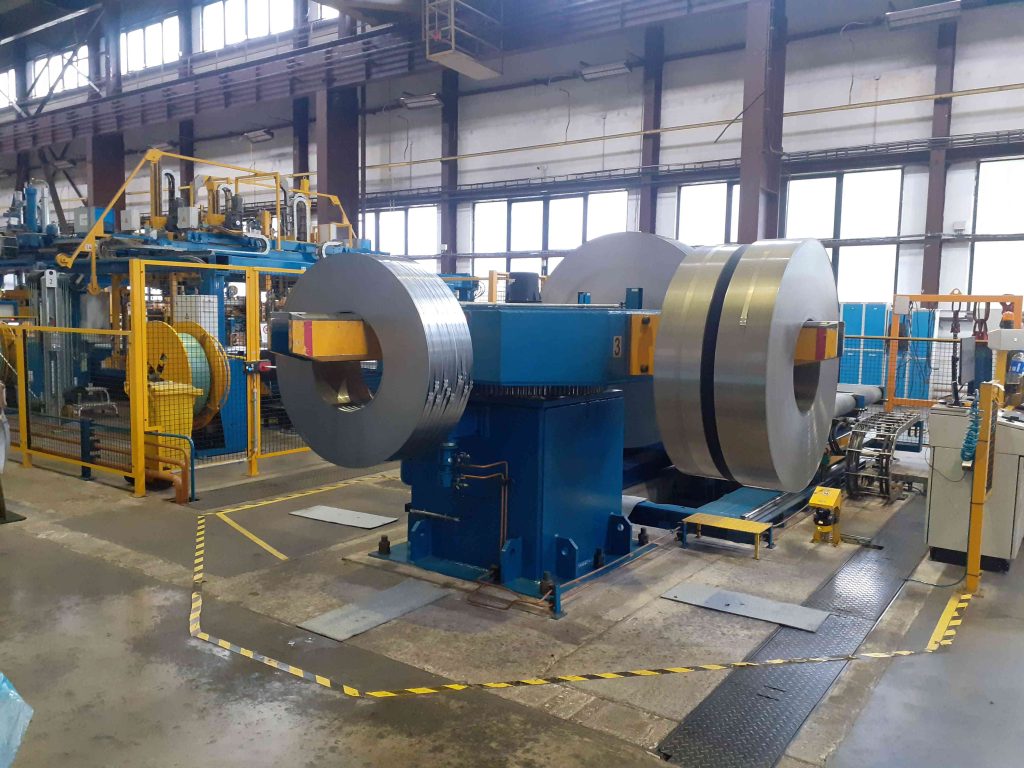 Se zájmem jsme pokračovali prohlídkou poklopových žíhacích vodíkových pecí firmy EBNER, zrekonstruované válcovací vratné tratě kvarto 630 Škody Plzeň (max. šířka pásů 570 mm a tloušťka 0,15-5,5 mm), zrekonstruované hladící tratě 270/650×630 pro egalizaci pásu po žíhání, zařízení pro převíjení svitků do pece a v neposlední řadě dvou dělících linek s rozsahem tlouštěk 2,0-5,5 mm a 0,15-2,5 mm.